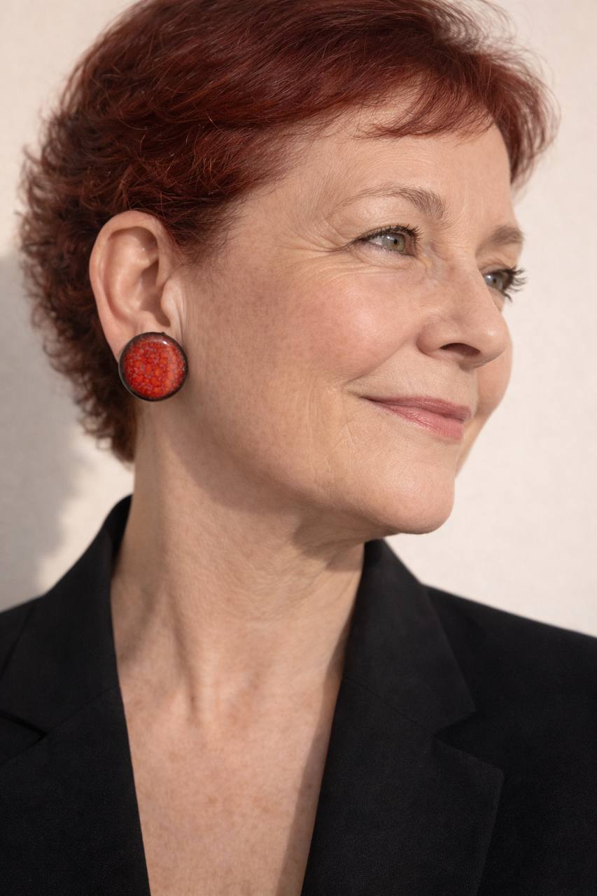 Pendientes de cerámica negra hechos a mano, con esmalte rojo intenso.
